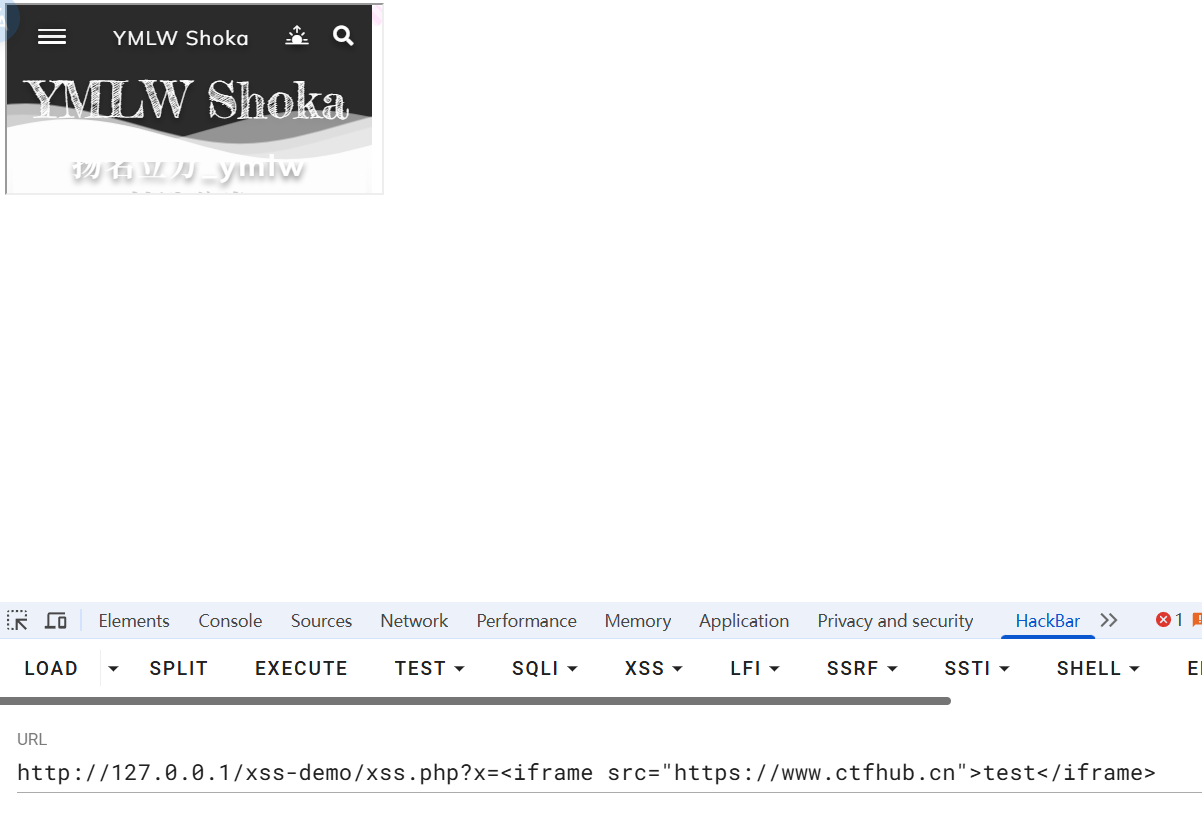 如果是嵌套了别的域名:http://127.0.0.1/xss-demo/xss.php?x=<iframe src="https://www.baidu.com">test</iframe>就会让浏览器不经意间执行访问这个域名:
