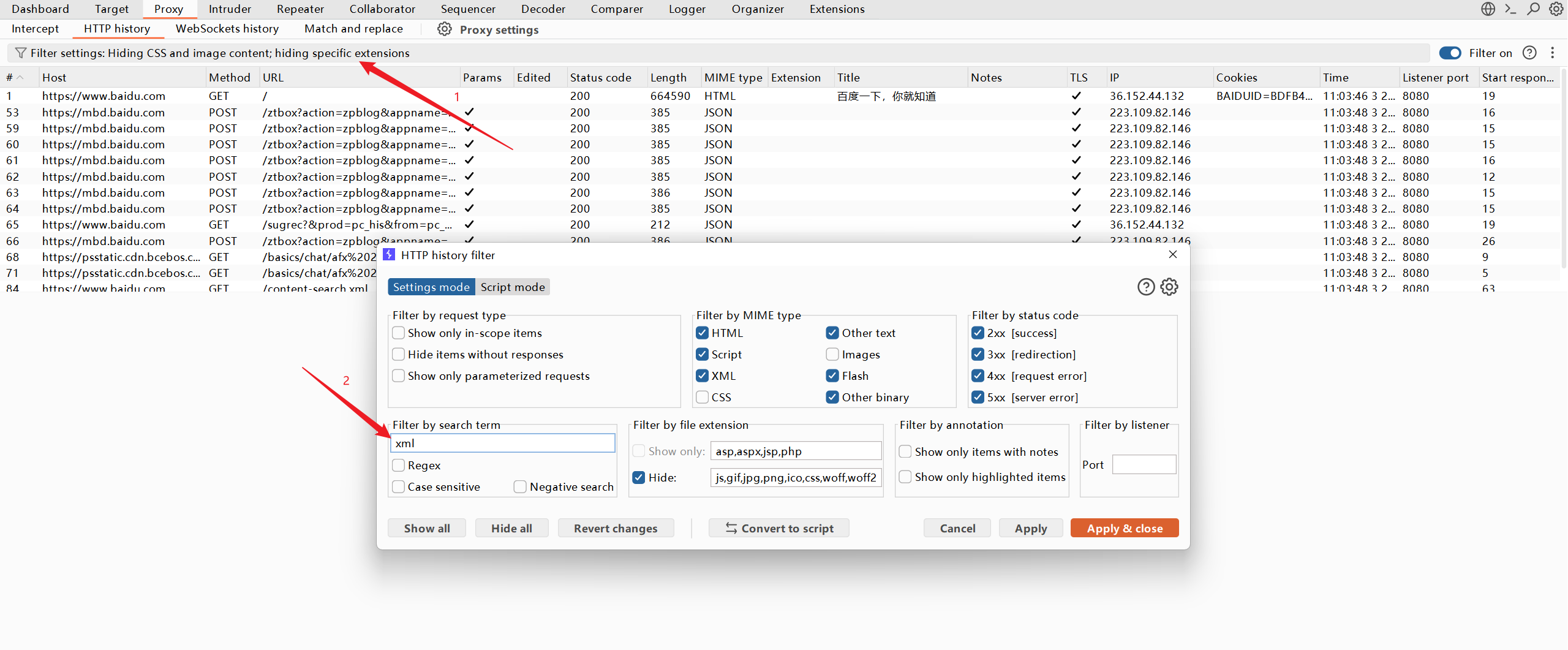 1、获取到的 Content-Type 或数据类型为 xml 时,尝试 xml 语言 payload 进行测试(burp可以搜索关键字)。